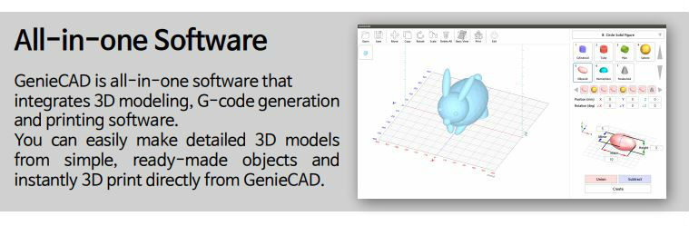 - All-in-one Software integrates 3D modeling, G-code Generation and printing software