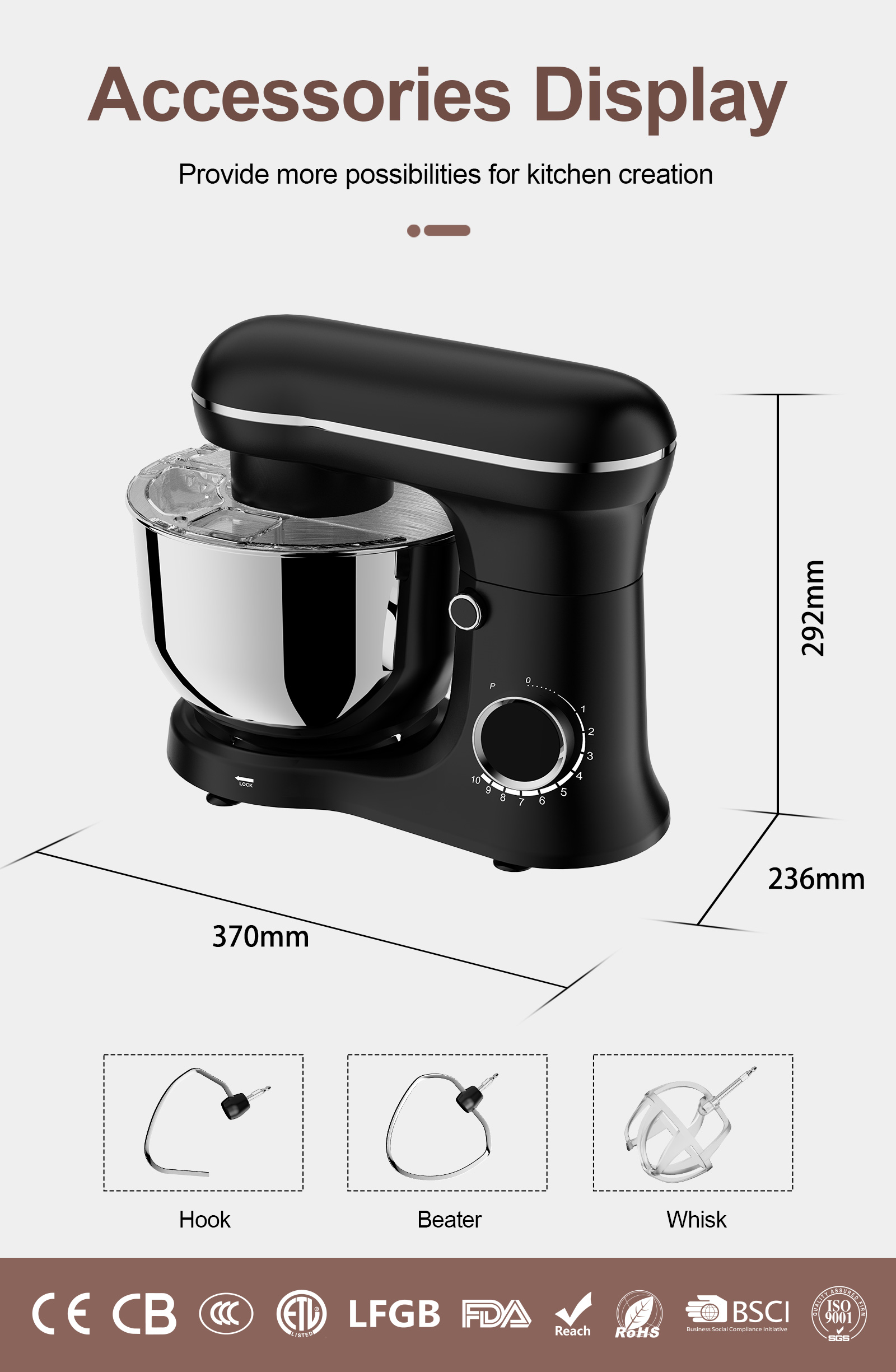 | Standard Accessories | 1pc dough hook 1pc egg whisk 1pc die cast beater |