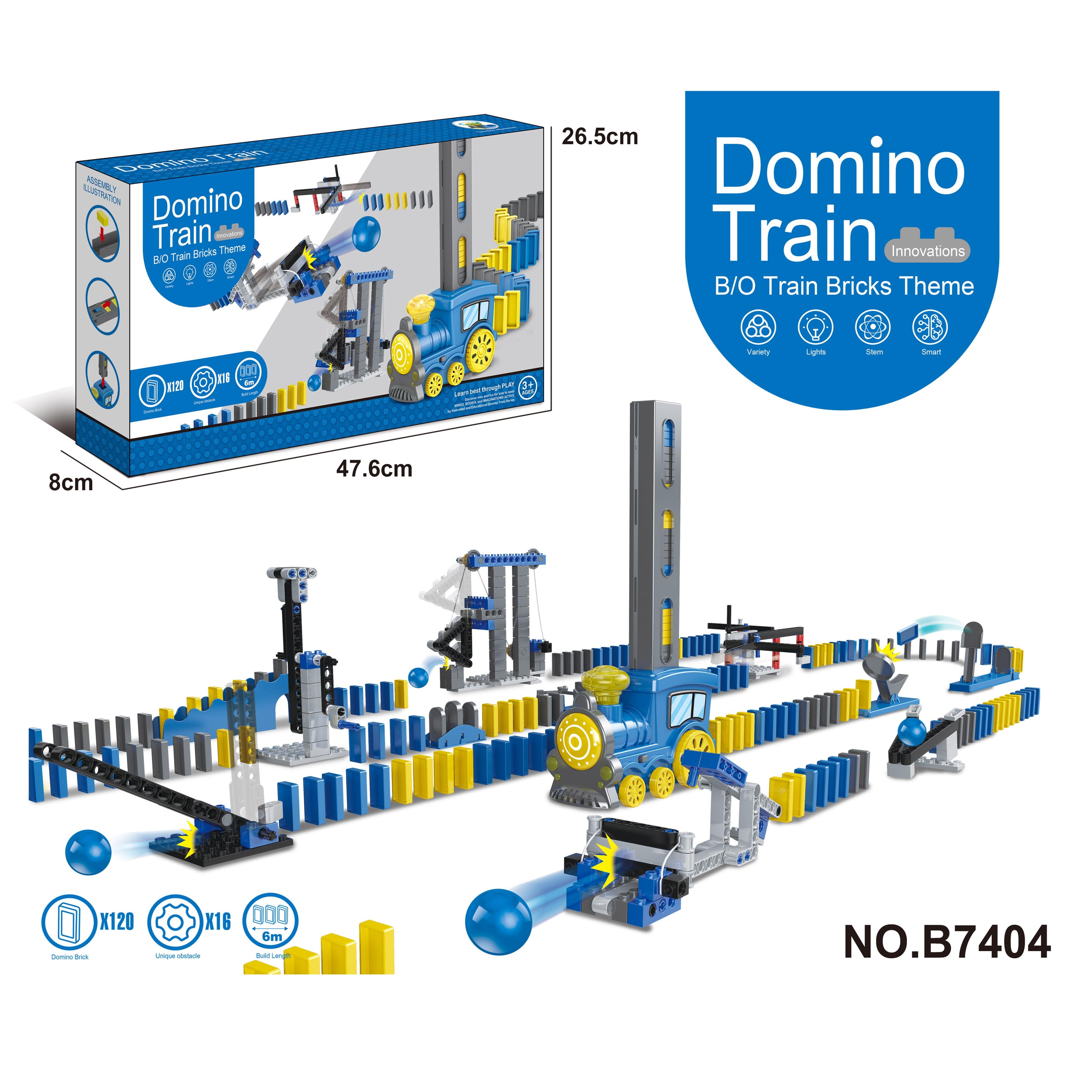 STEM-Domino Electric train (Building block series) Train with light music, domino 120pcs