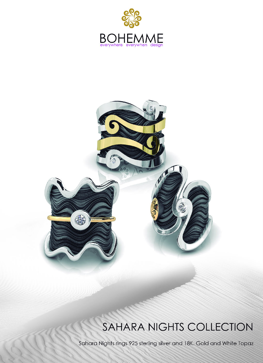 Sahara Nights collection rings. 925 Sterling Silver and 18K Gold with white topaz