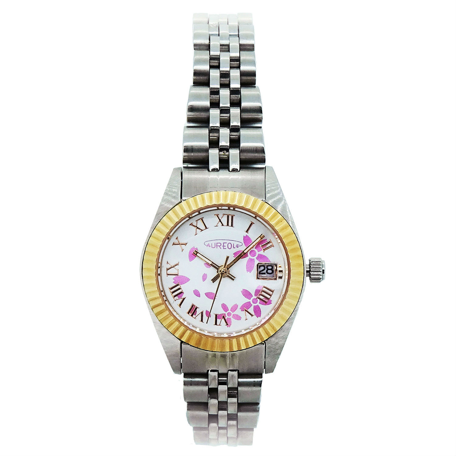 - White round dial featuring cherry blossom print for added cuteness.