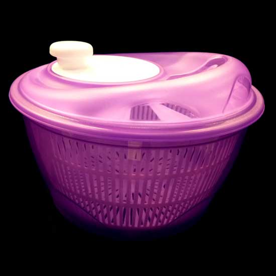 The purplish salad spinner is made of PPRC material. By turning its handle, salads inside the spinner can be dried. The simple layout also ensures easy wiping and cleaning.
