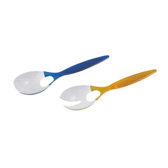 Displayed is a salad spork coming in 2 colors for your selection. Made of food grade materials, this salad spork is safe for daily use. It is a must-have item for every kitchen.