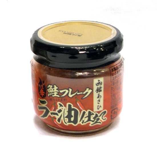 This bottle of salmon flakes is available in spicy and non-spicy flavors. The salmon flakes are made from autumn salmon caught in or near Japan. The flakes are seasoned to keep you eating. They are great as toppings for rice, pasta and more.