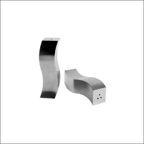 A salt and pepper shaker set made of 18-8 stainless steel.