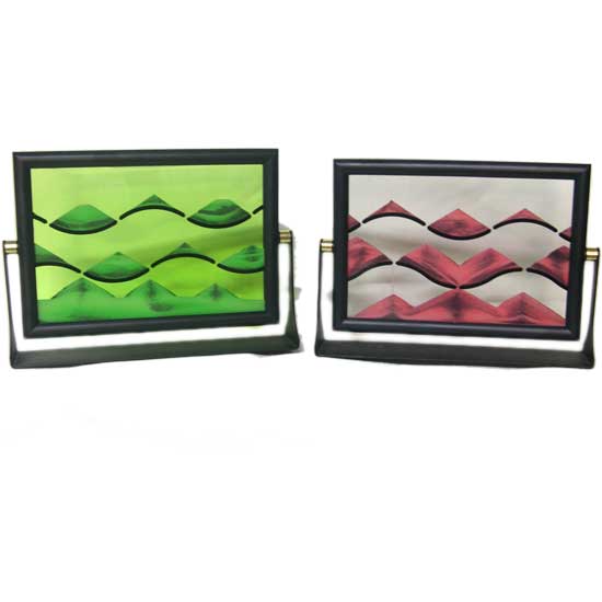 Featured are two special decorations named sand pictures. Each picture comes with a frame with sand inside. The sand drifts slowly inside the frame when the frame is flipped over. The items offer visual enjoyment for hours.