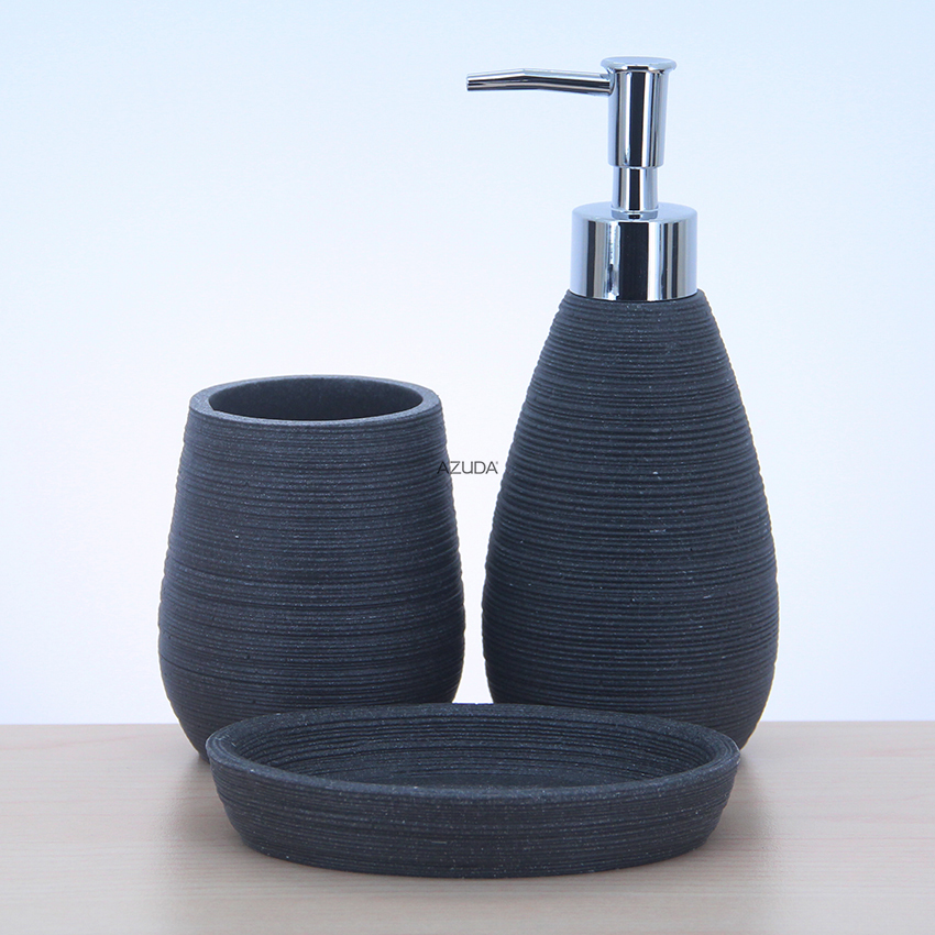 Sandstone Bath Accessories Sets W/Ribbed Design In Black