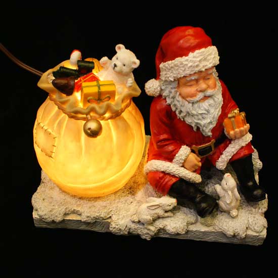 The Christmas decoration features a tired Santa Claus sitting with his big pack of Christmas gifts. It comes with illumination for added fun and mood setting. This Santa Claus handicraft makes a wonderful decoration at Christmas.