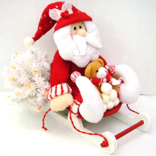 Featured here is a Santa Claus plush toy with a cute and adorable look. The Christmas tree at the back of the sleight adds a touch of uniqueness to this toy. This eye-catching Santa Claus plush toy is a good gift at Christmas time.