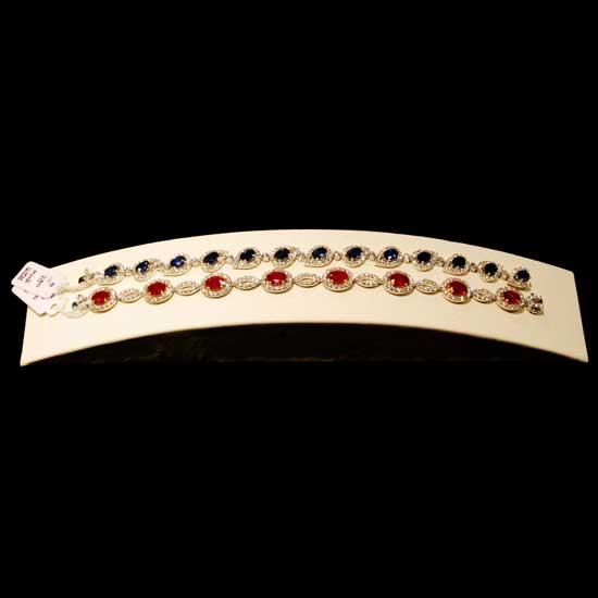 The sapphire bracelet touts an elegant design with loose white diamond accents. It is finely made with exquisite craftsmanship and attention to details. This dazzling and brilliant bangle is sure to command attention.