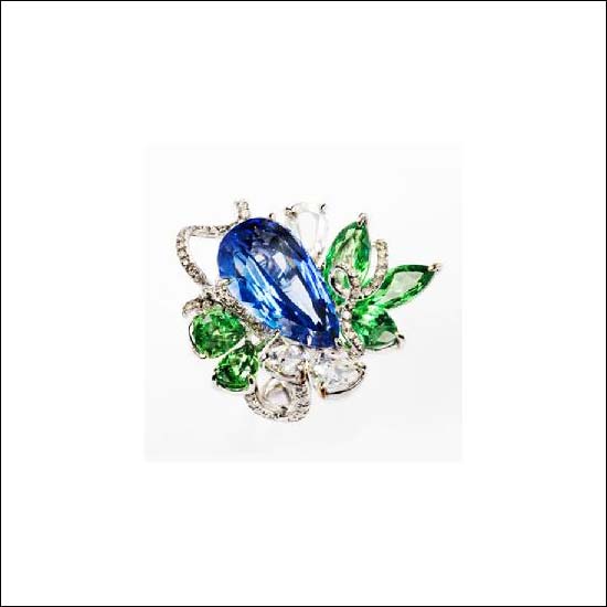 5 pieces of tsavorite together with in drop shape surround the sapphire