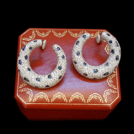 This pair of stylish earrings comes with a fashionable and modern design. The earrings are crafted with sparkling diamonds and sapphires for added glamor. This pair of sapphire diamond earrings will surely make you stand out from the crowd.