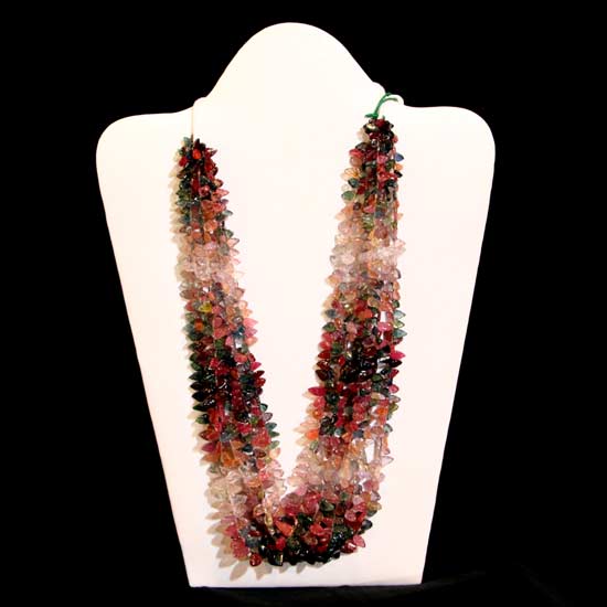 This necklace is delicately crafted with sophisticated details. It features a multi-strand design interspersed with sapphire stones in assorted colors, showcasing a touch of uniqueness. This sapphire necklace makes an exceptional way to enhance your fashion ensemble.