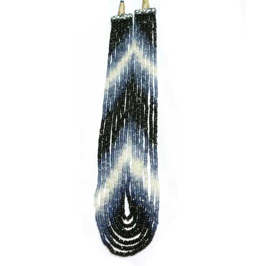 This sapphire necklace is made of seven strands fully beaded with sapphires in shades of blue. The striped design with a gradient color change boasts a beautiful look. This necklace definitely highlights the glamor of the wearer.