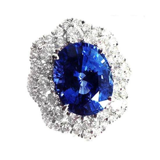 This is a sapphire ring produced from an 18.1ct royal blue sapphire and a 5.2ct diamond set. The sapphire is carefully cut to offer shiny and sparkling facets. Adorn your finger with this sapphire ring.