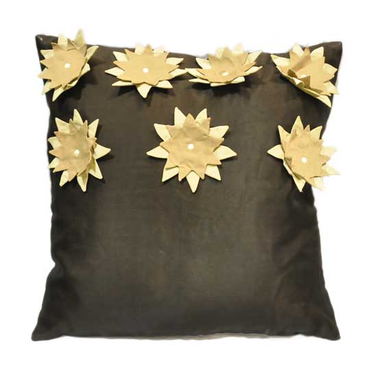 Shown here is a satin cushion cover that is adorned with fabric flower decoration for a more attractive look. The soft and smooth satin texture of this cushion cover ensures long-lasting beauty. This elegant satin cushion cover is a great decoration to accessorize a sofa.