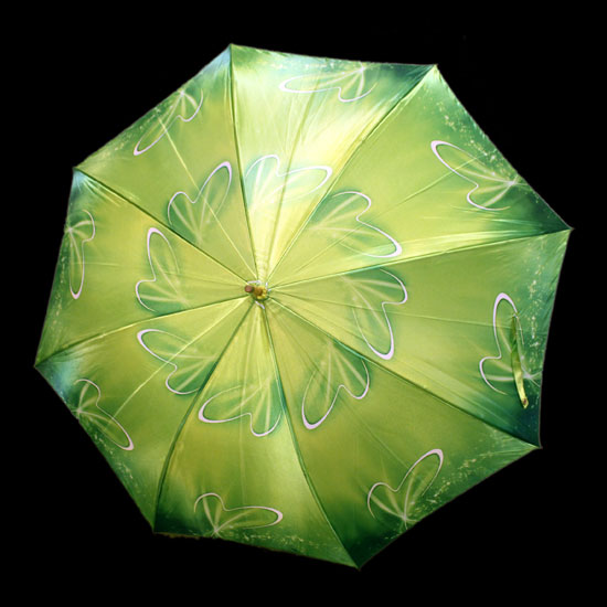 The umbrella features a stylish green exterior in a smooth, glossy finish. The umbrella is made of satin material that is treated for rain protection. With a sturdy wooden frame, the umbrella can maintain its style and beauty for years.