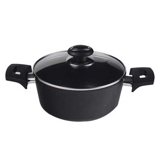 The sauce pot is specially designed with two heat-resistant handles. The robust aluminum construction promises lasting durability. This handsome sauce pot makes a great companion for every chef.