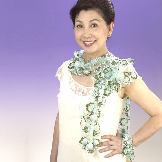 The scarf features patterns of flowers and leaves. It is good for mature women to wear for special occasions. The scarf can show the elegant side of the user.