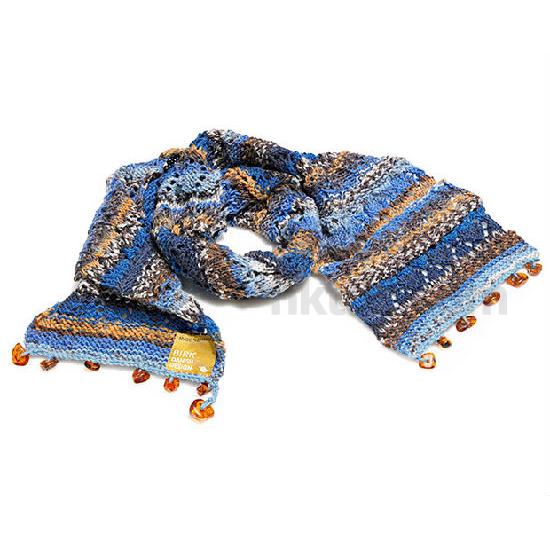- Multi blue small scarf with incorporated carefully selected pieces of Danish coastal amber.