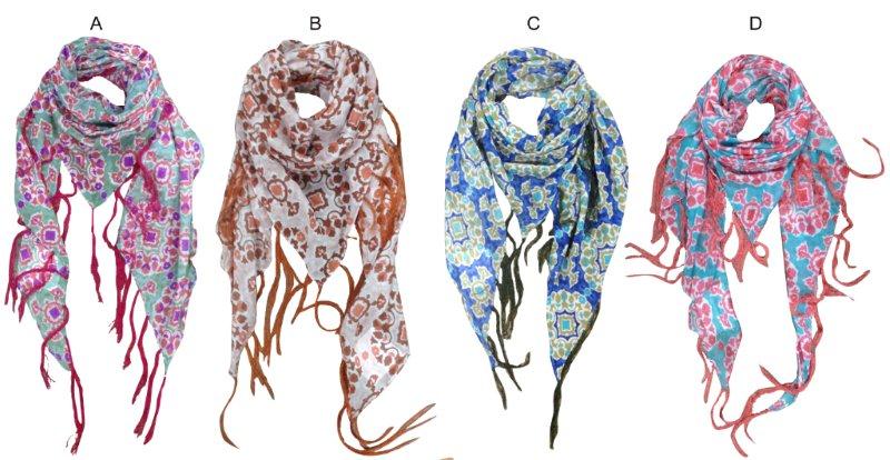 Scarf in different qualities like cotton, viscose, wool, silk, rayon in different designs, colors and patterns also can do customization as per requirement.