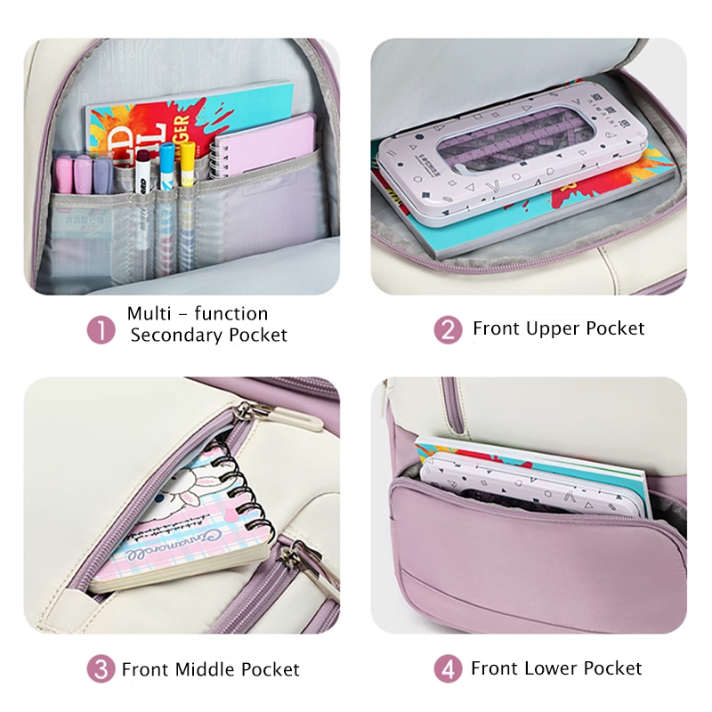 Large-capacity Main Compartment: Spacious enough to hold textbooks, tablets, and notebooks with ease.