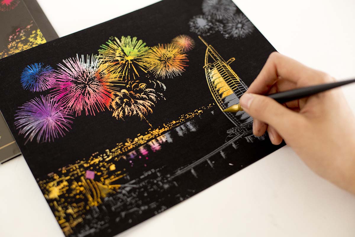 - Products: Scratch coloring city night view fireworks (Paris, Dubai, Sydney, London, Moscow, Shanghai, Barcelona, Budapest)