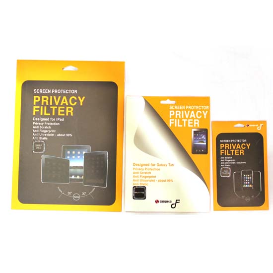 Presented to you is a screen privacy filter that protects users' personal information by adjusting the viewing angle through the innovative micro-louver technology. Designed with an AG coating, the screen filter can protect the eyesight of the users by preventing the occurrence of dazzling reflection. The screen privacy filter also protects the screen from scratches and fingerprints.