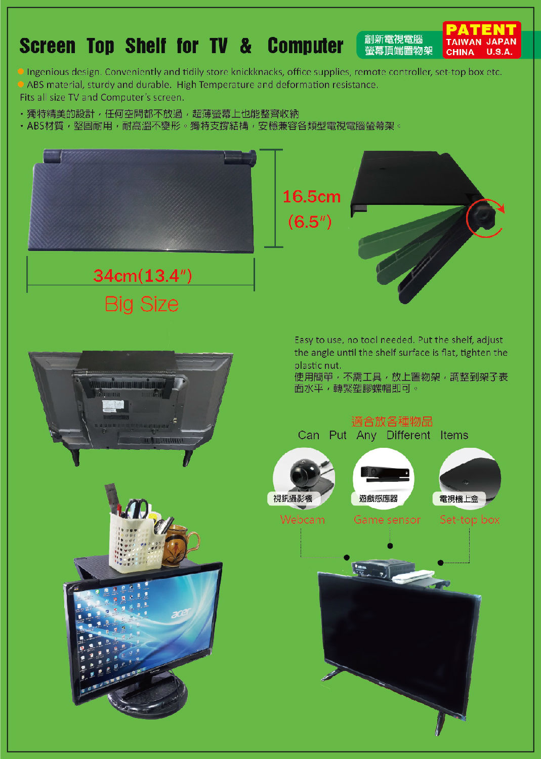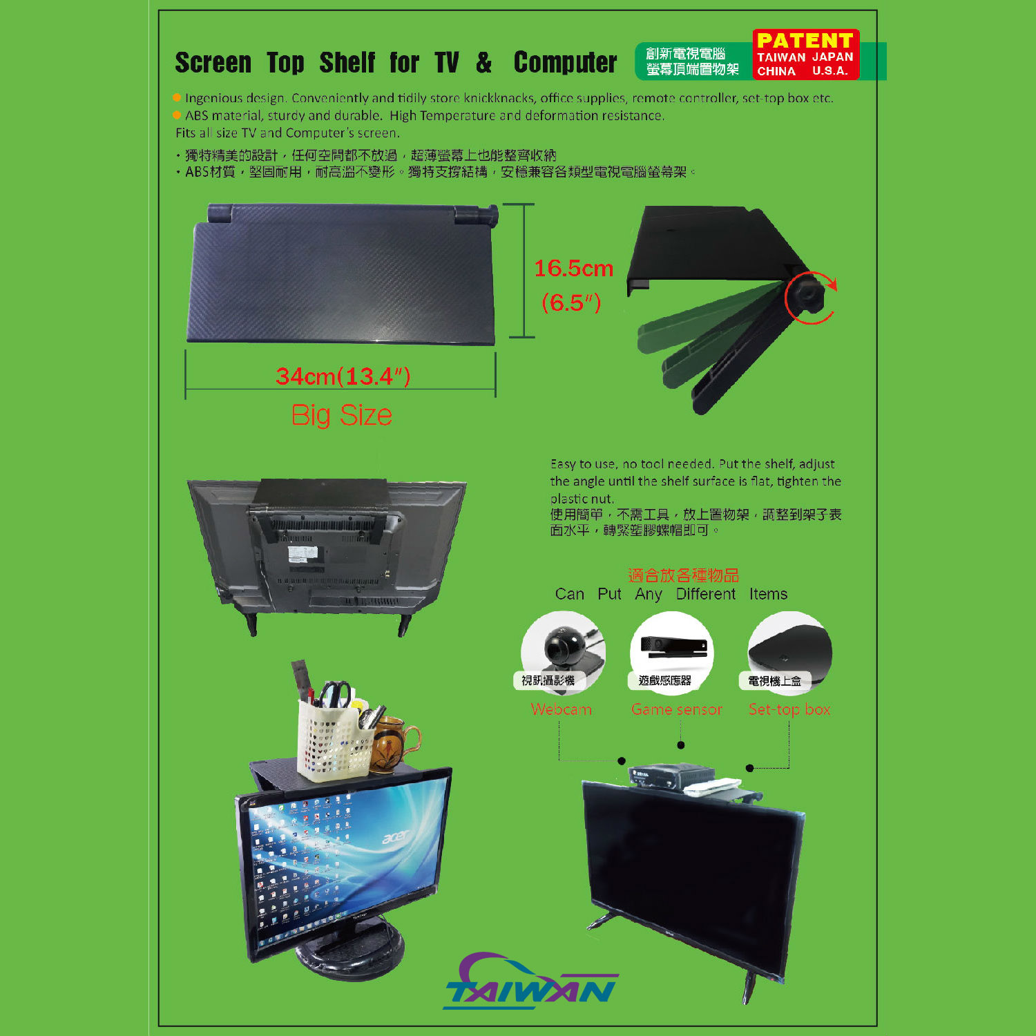 Big size screen top shelf for TV and Computer.