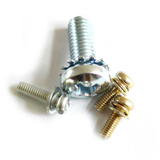 Shown here is a series of screws coming in different styles. The screws are made of solid metal and coming with various types of finishes. The screws go well with different eyelets or washers for keeping parts, pieces of wood and metal in place.