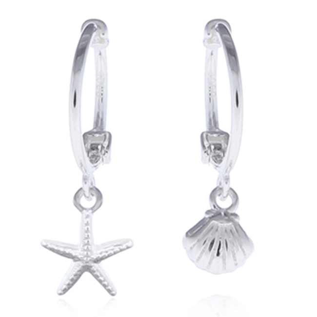 Sea Of Life Huggie Silver Plated Hoop Earrings