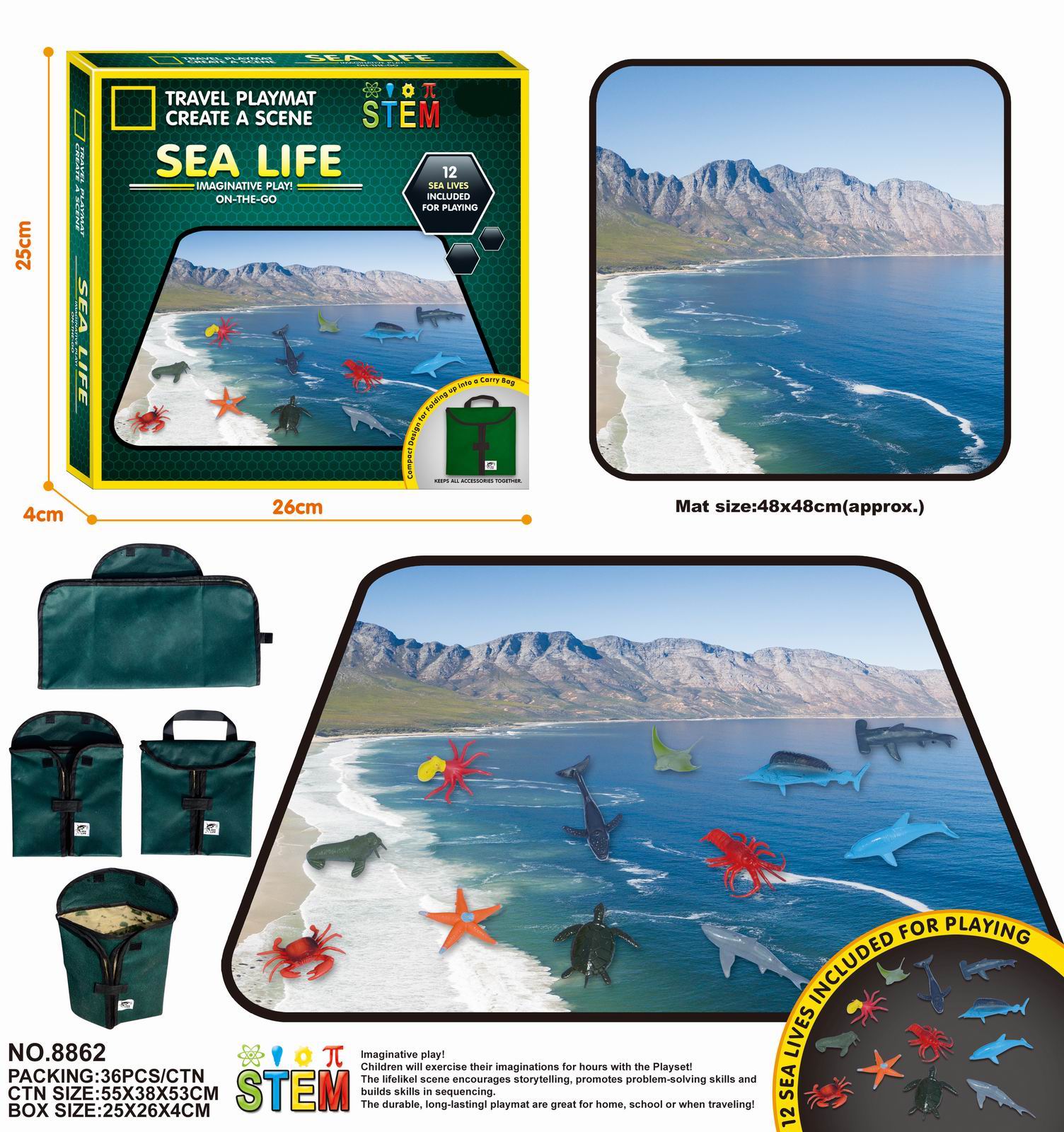 Create A Scene Kit: Move sea life pieces around on the playmat to create an endless combination of scenes. Perfect for home school and traveling! This package contains 12 sea life pieces and one playmat with carry bag function.