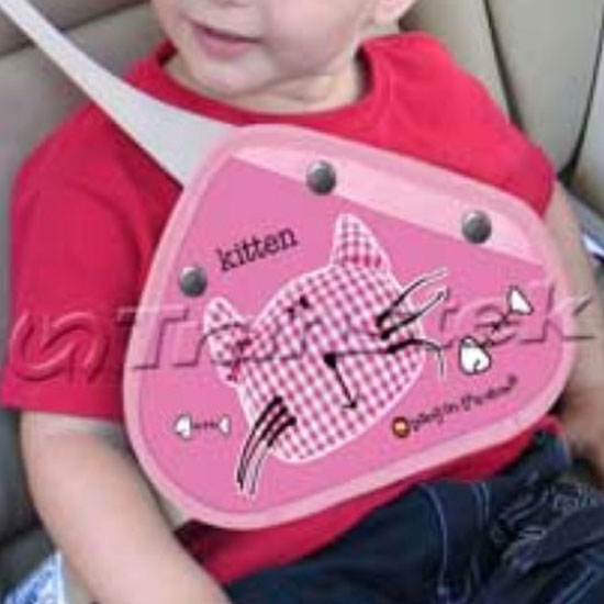 This seat belt adjuster protects junior passengers from sharp and hard seat belts. The well-designed product is easy to use. It is decorated with a cute kitten print.