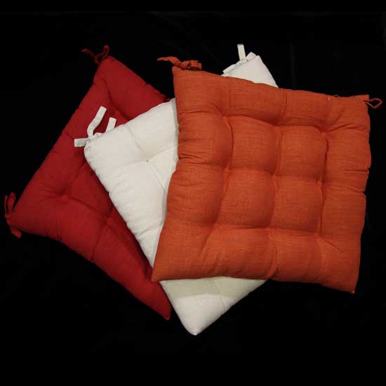 Highlighted is a seat cushion coming with a square-shape shell. The cushion comes in sharp colors, featuring simple quilted patterns. Strings are attached to hold the cushion firmly on the chair.