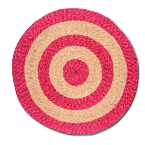 This is a seat mat made of 100% Abaca materials. The mat is in a round shape and a dartboad pattern. It is natural and bio-degradable and therefore is environment-freindly.