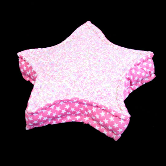 This seat pad appeals to children with an adorable star shape. Fabrics of floral and star prints are used to form a cute combination. The inside is stuffed with soft materials for comfy use.