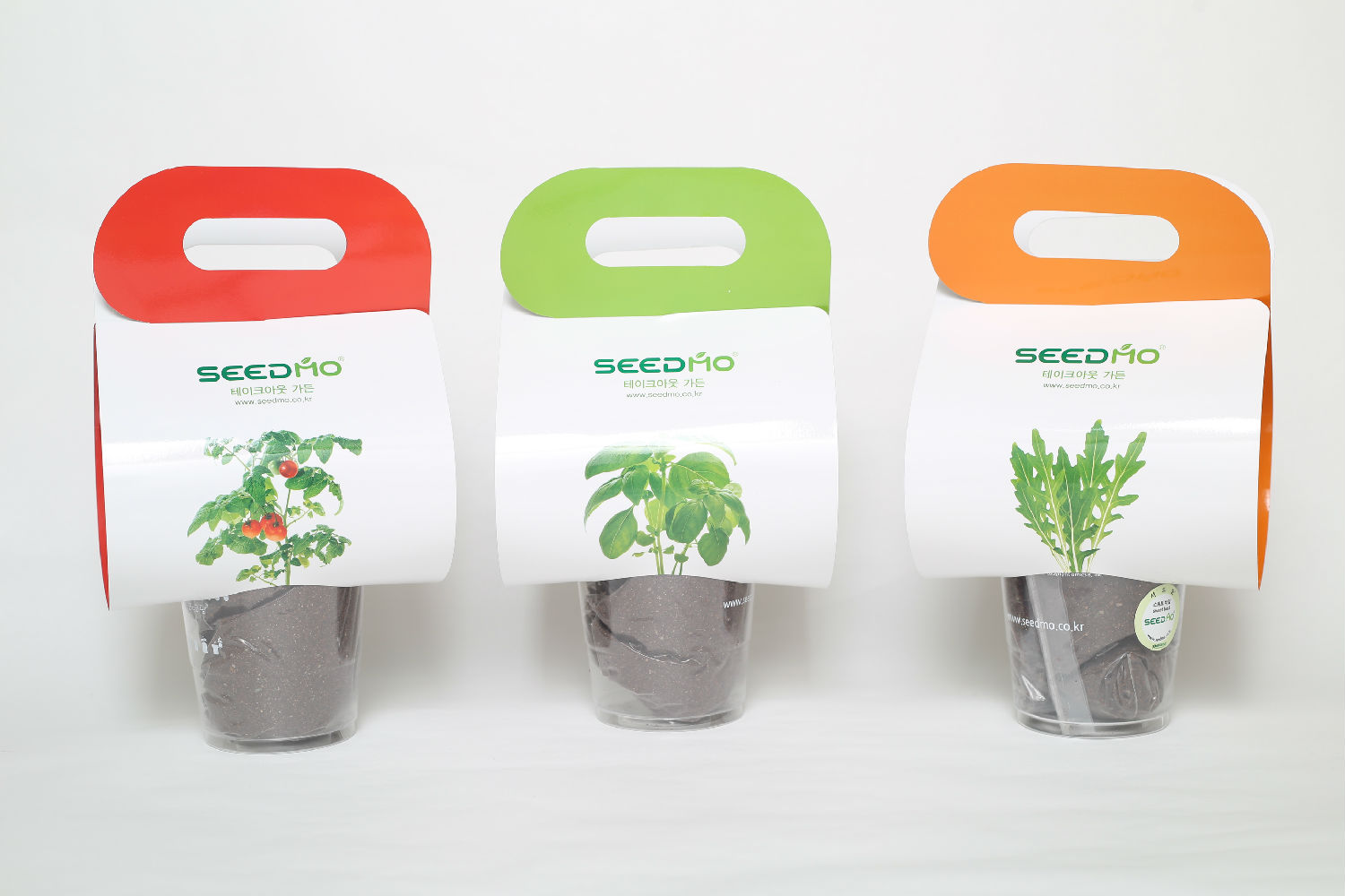 Cornuco Take-out Garden includes Seedmos, bed soil(or soil pellets), and a take-out plastic cup
