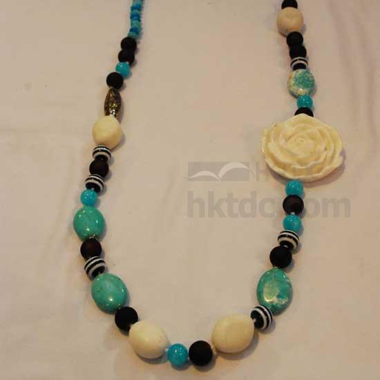 The unique combination of colors is the hallmark of each Nacre Limited Jewelry collection. This handmade semi-precious stones and bead necklace uses different shapes and semi-precious stones such as Magnisite, Quartzites, Wood or Coconut and Synthetic materials like Rubber, Resin and Arylic for this casual chic style. It is an eye-catching piece that, easily pairs with a variety of casual and fun looks.