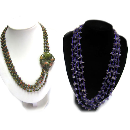 Outlined here is a semi-precious stone necklace that is available in unikite and amethyst stones. The necklace is well polished for maximum luster. This semi-precious stone necklace goes well with assorted outfits.