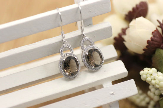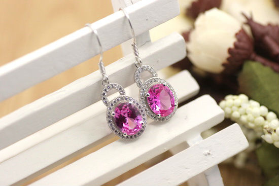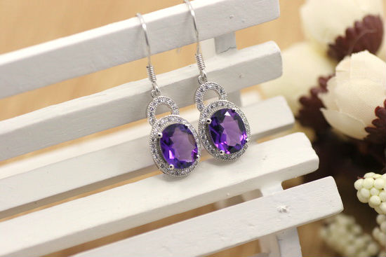 8x10mm Oval Amethyst w/74pcs 1mm aaa cz Silver Earring hook