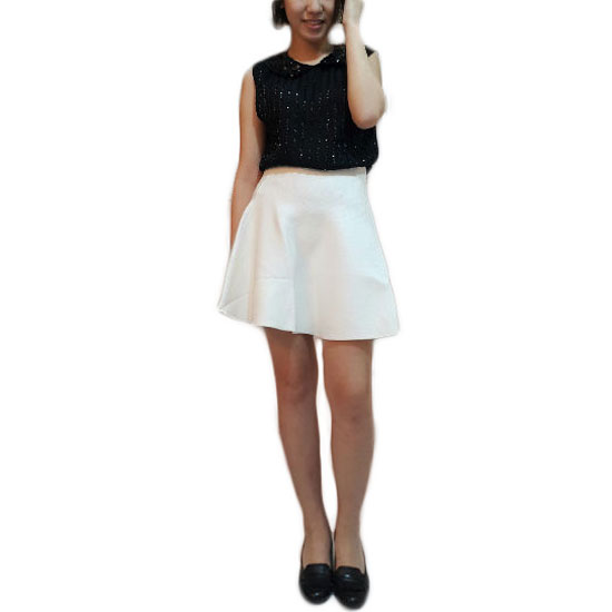 Made of chiffon, this tank top is light, flowy and elegant. The sequin details are carefully sewn for a touch of stylishness. This tank top pairs will with high-waisted flared skirts and slip-on shoes.