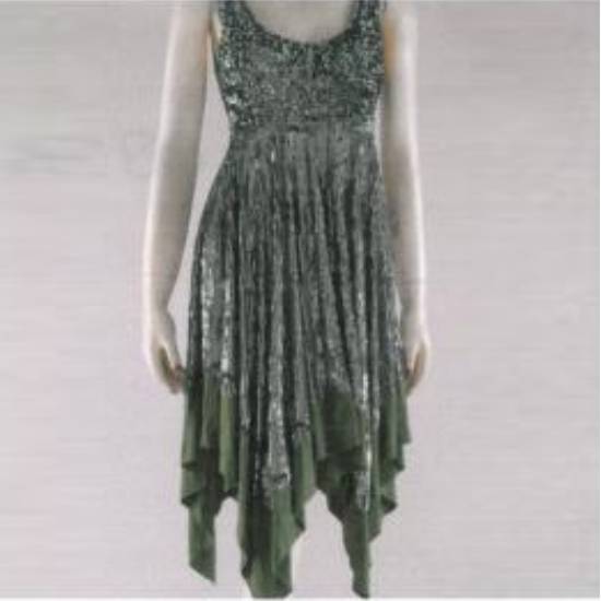 The stylish sleeveless dress comes with a fancy draped fairy hem and a scoop neckline. It is fully embellished with dazzling silvery sequins to cast a shimmering image. Also featured is an empire waistline which enhances your feminine silhouette and boasts sexiness. Exquisitely tailored with light and soft fabric, it makes a perfect choice for wearing in evening parties or any special occasions.