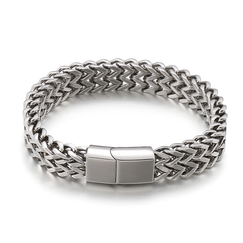 1.Stylish and Fashionable design: The Stainless Steel Magnet Buckle Double Row Braided Metal Bracelet is a trendy accessory with a unique design. Suitable for both men and women, it exudes a sense of casual fashion and style.