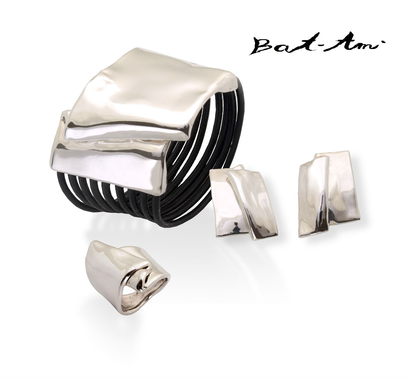 Sterling silver Electroform Black leather cords Magnet clasp bracelet, ring & Omega post earrings