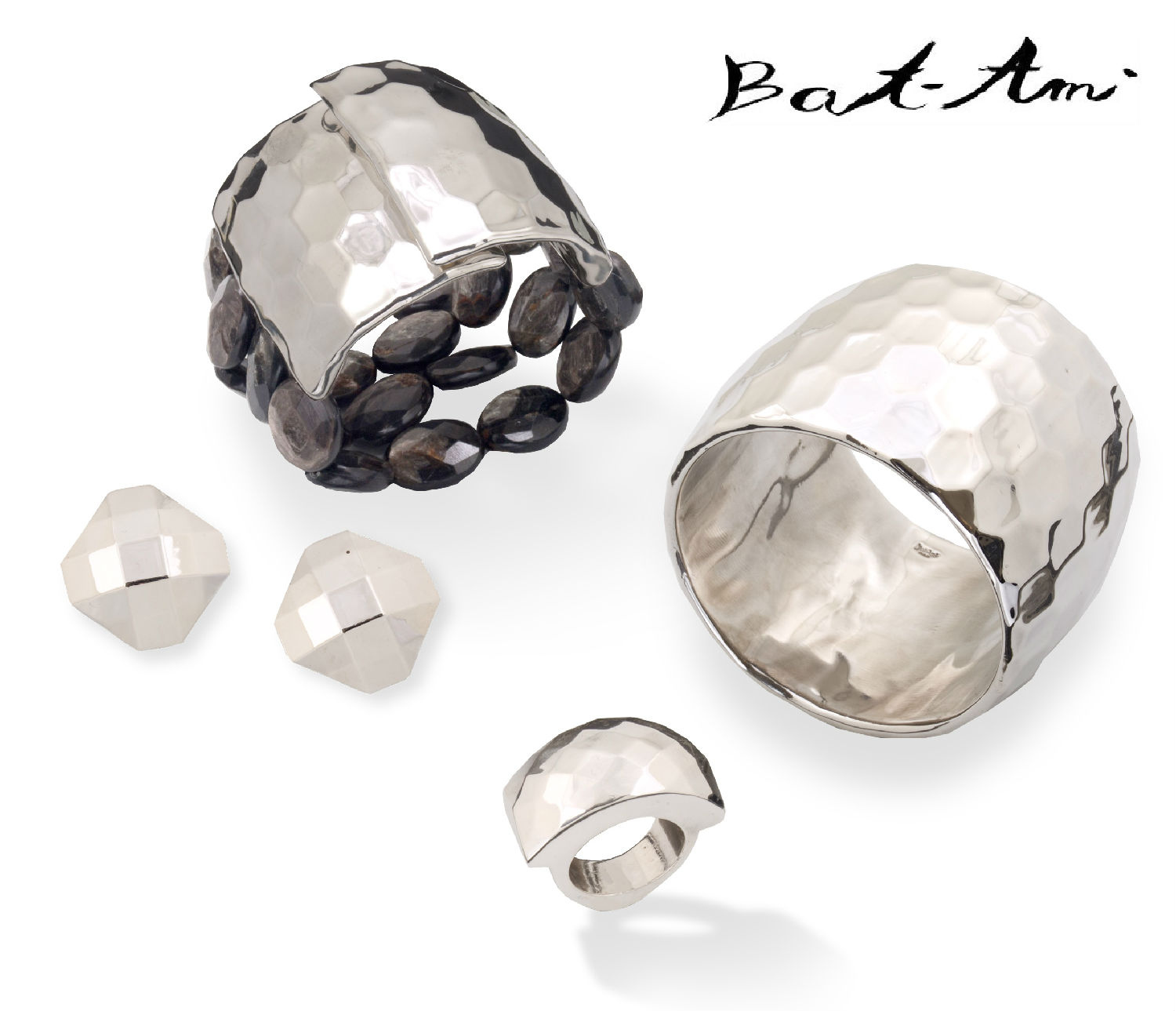 Electroform sterling silver Golden Mica magnet bracelet, omega post earrings, wide bracelet & ring
