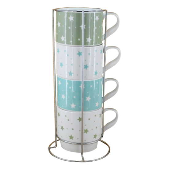 Set of 4pcs Stackable Ceramic Mug with Stand