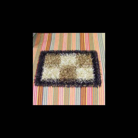 - This rug has a black rim with six alternately coloured cream and coffee squares