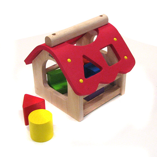 This is a shape-sorting house that provides infants and small children the opportunity to learn about various shapes and sizes. This hands-on approach which results in instant feedback of whether the child's attempt is correct is fun and engaging, and can effectively facilitate children's learning.