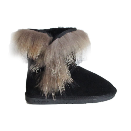 These black shearling boots are adorned with woolen trimming for a lively and fluffy look. The suede upper and woolen lining guarantees enhanced warmth and comfort. Enhance your winter style this these fashionable shearling boots.