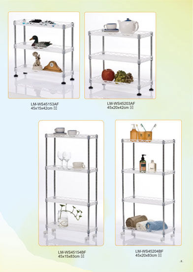 Featured here is a 3-4-tier shelf designed with castors. The net-like structure of the shelf allows contents to dry fast.